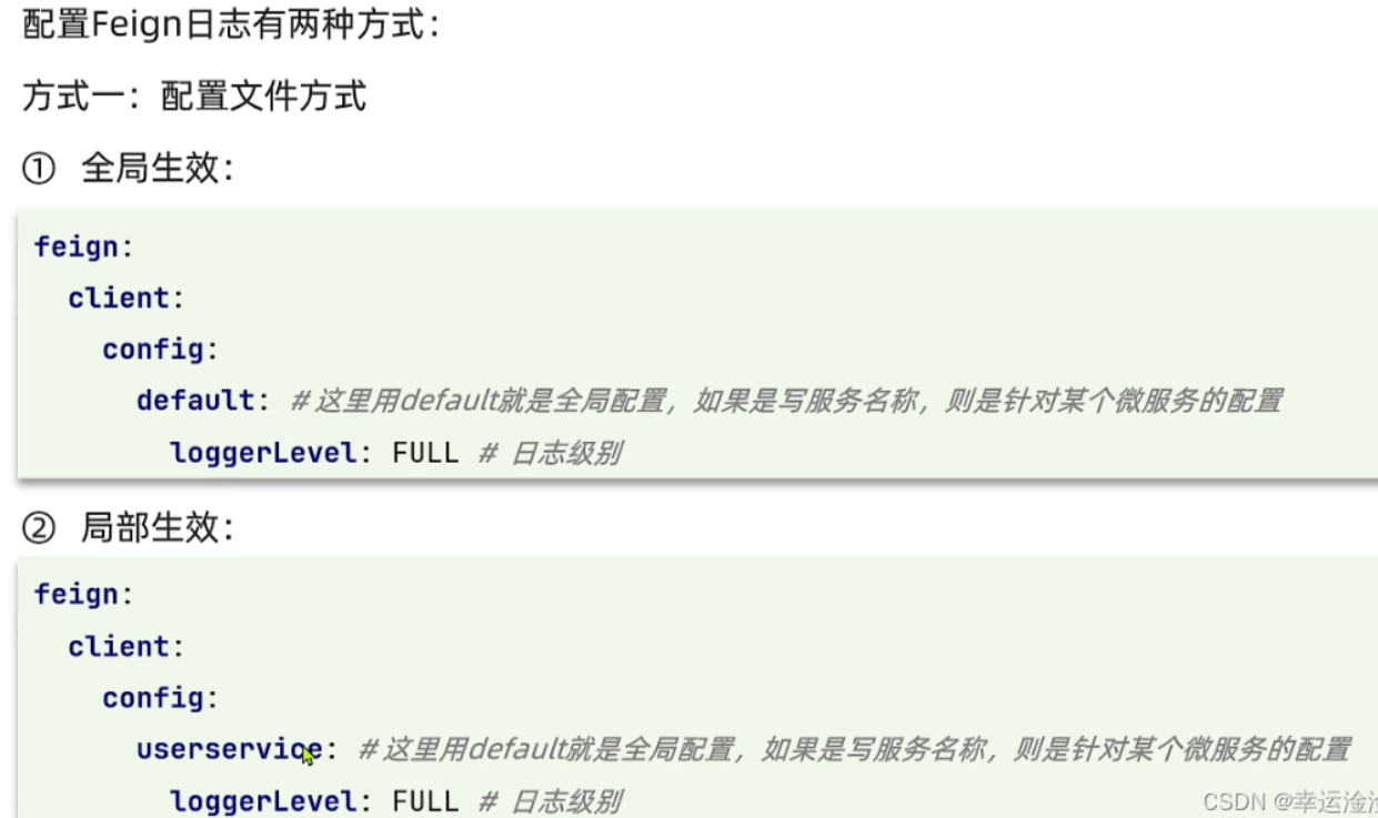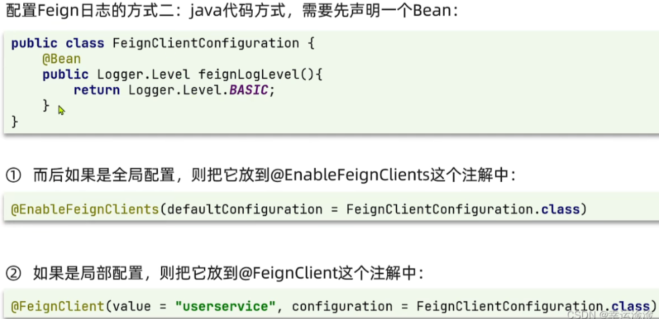 方式一是配置文件,feign.client.config.xxx.loggerLevel