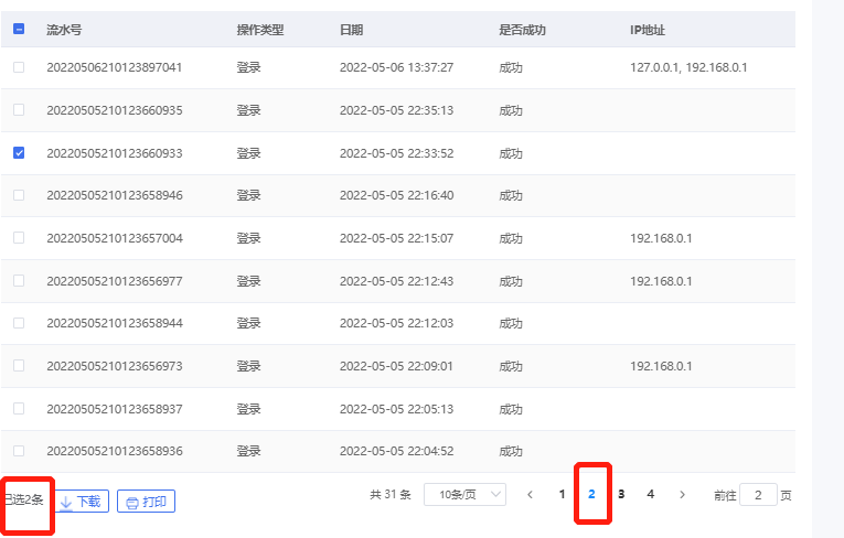 看下面两张效果图,分页跳转到2之后,check的 list 并没有被清空掉,做法向下看。