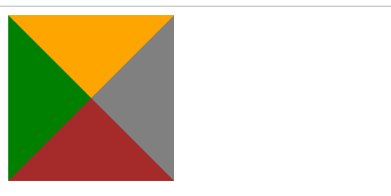 <div class="box"></div> .box{ width: 0px; height: 0px; border-top: 80px solid orange; border-left: 80px solid green; border-right: 80px solid gray; border-bottom: 80px solid brown; }