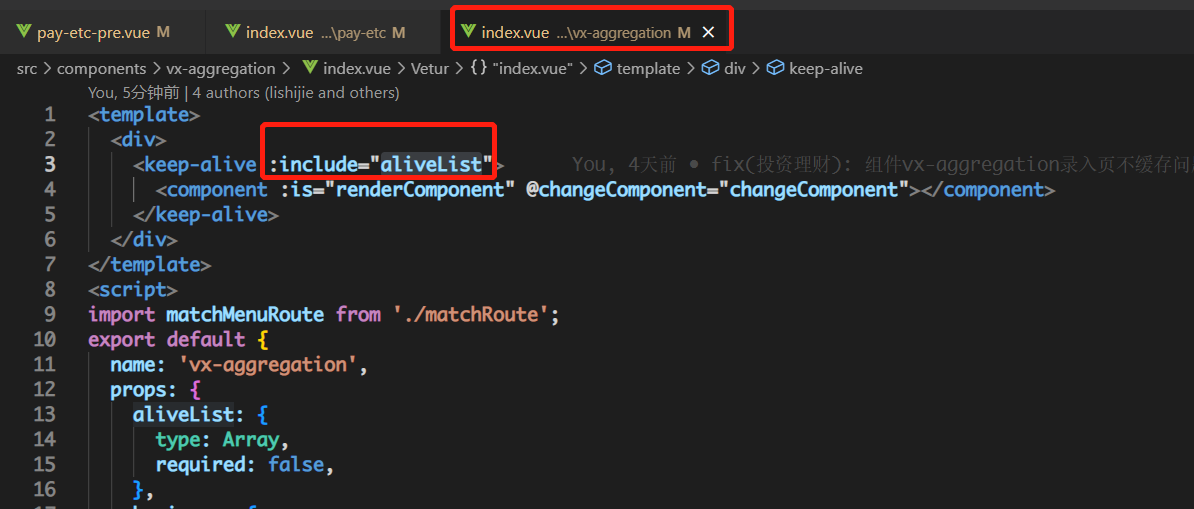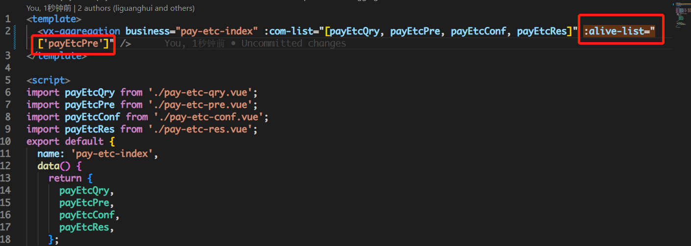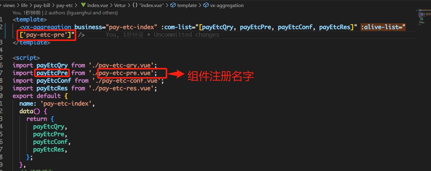 但是结果是缓存不生效,我当时就很疑惑,于是开始瞎捉摸,是不是名字不对,于是把组件注册名字换成了组件原生的名字。如下图
