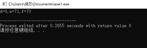 printf("d=%d,e=%d,f=%d\n",d,e,f);