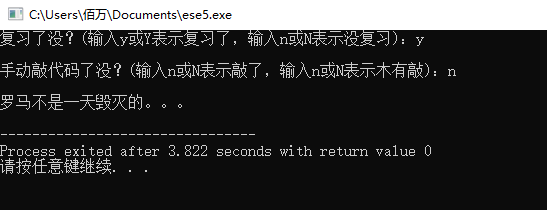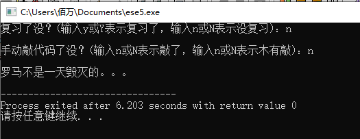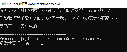 printf("复习了没?(输入y或Y表示复习了,输入n或N表示没复习):");