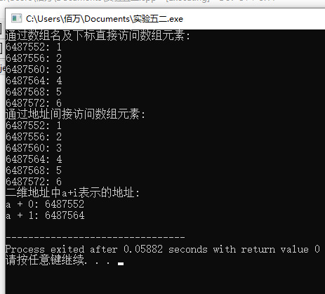 printf("二维地址中a+i表示的地址:\n");