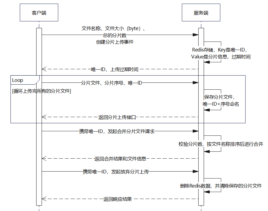 1、创建分片上传事件,告知服务器要上传的文件名称、大小和总的分片数,返回一个用于此次分片上传的唯一Id和过期时间。