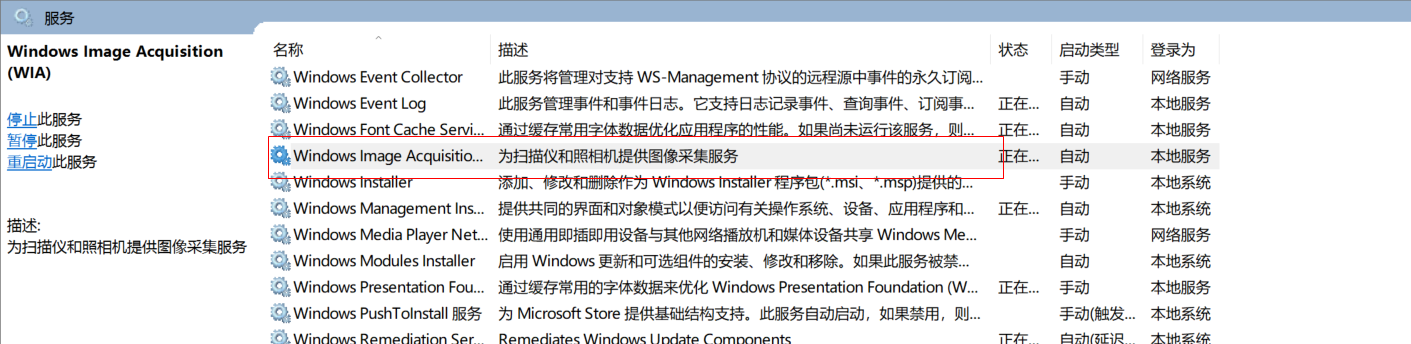 1.2 将"Windows Image Acquisition (WIA)"服务设置为自动重启