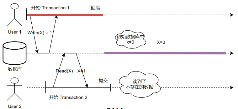上图为read-uncommited隔离级别,存在读到未提交数据的问题。