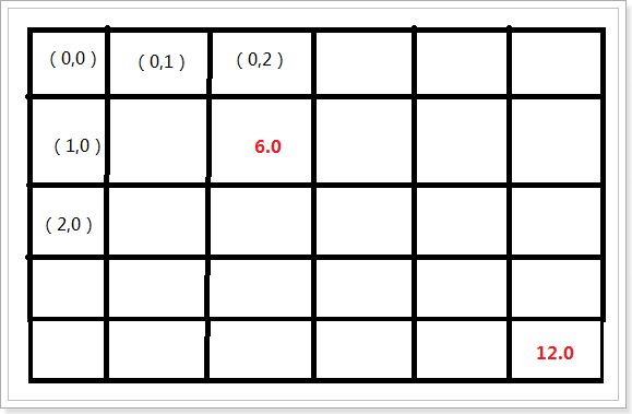 不论是索引值还是坐标值都是从0开始,所以行数是索引值加1