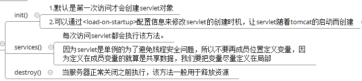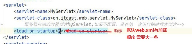 默认情况第一次访问创建,可以通过配置load-on-startup的值,让servlet的随着tomcat启动而创建,该值只要大于等于0即可。该值越小优先级越高