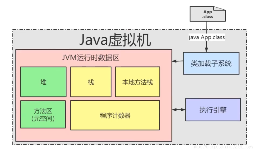 JVM通过Class Loader将符合其格式要求的class文件加载到内存里,并通过Execution Engine去解析class文件里边的字节码,并提交给操作系统去执行。
