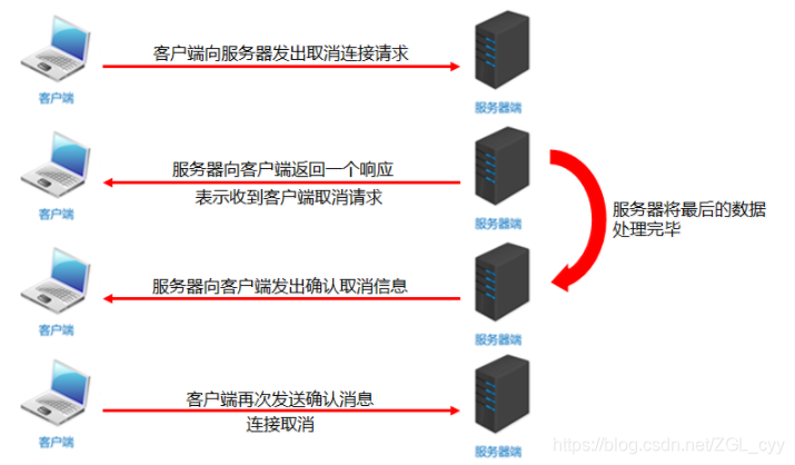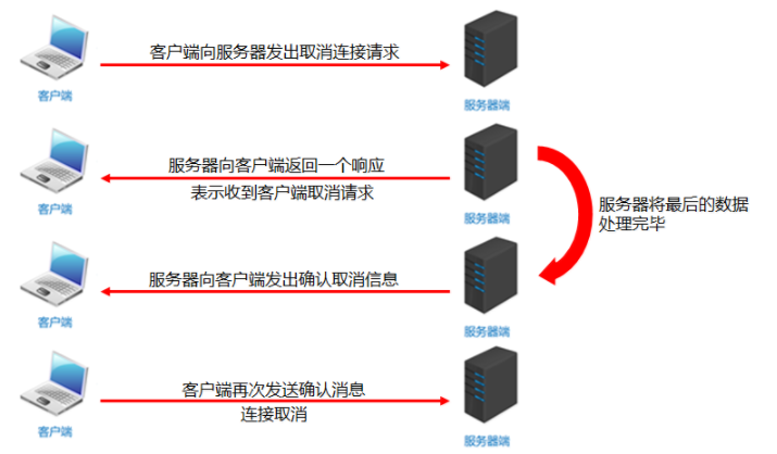 “挥手”是为了终止连接,TCP四次挥手的流程图如下(假设客户端触发Close)