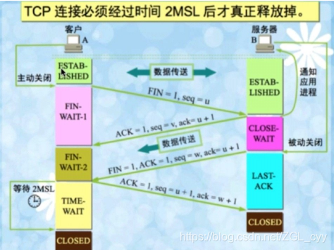 第四次挥手:Client收到FIN后,Client进入TIME_WAIT状态,接着发送一个ACK给Server,确认序号为收到序号+1,Server进入CLOSED状态,Client在经过2MSL时间也会进入CLOSED状态,完成四次挥手。