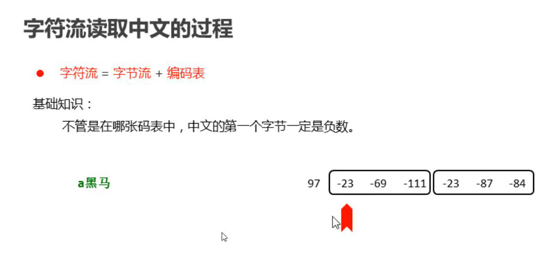 4.字符流就是字节流和码表的组合,中文在码表中是负数站三个字节