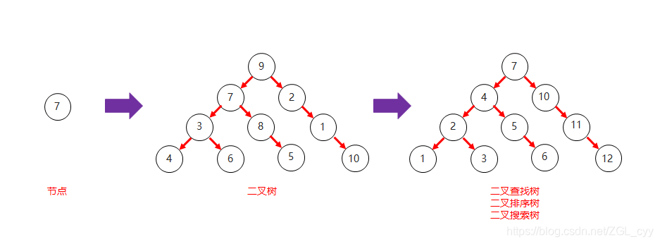 - 二叉查找树和二叉树对比结构图