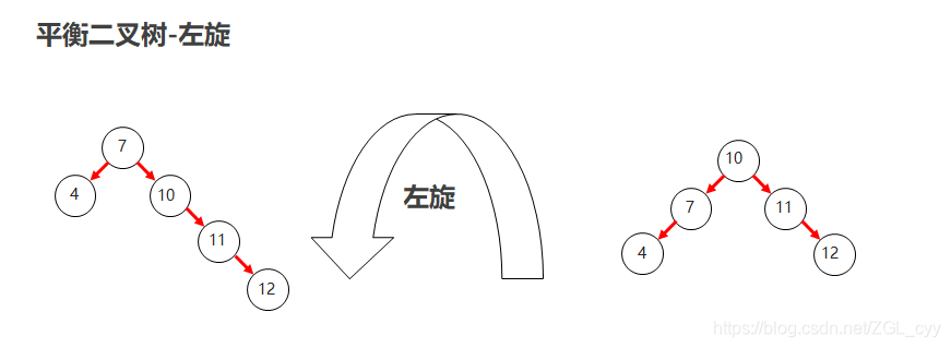就是将根节点的右侧往左拉,原先的右子节点变成新的父节点,并把多余的左子节点出让,给已经降级的根节点当右子节点