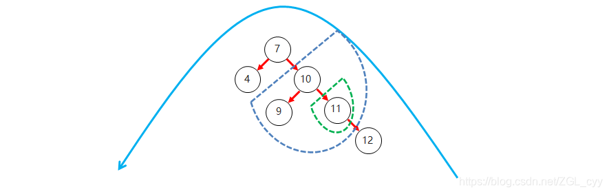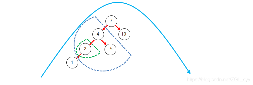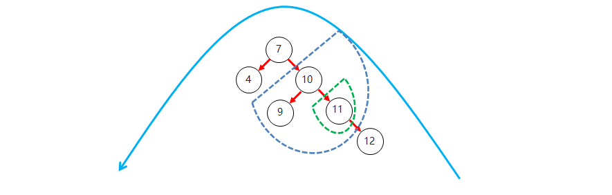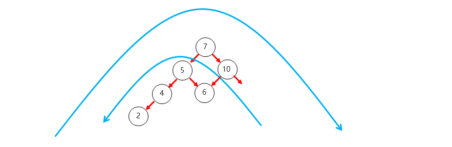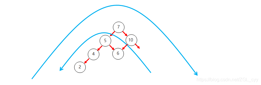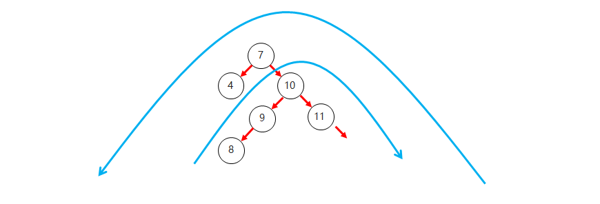 右子树上所有节点的值都大于根节点的值