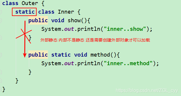 2.内部静态,外部不是静态还需要创建对象才可以访问