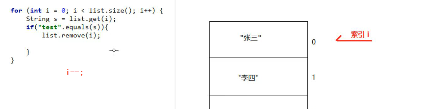 当删除后下面的内容向上移动,如果没有删除后往回走就会少查询一个,就会错过.