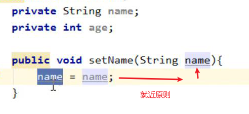 1.当参数或局部变量与成员变量同名时选择就近原则