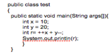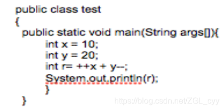 [解析]:A ++x先运算变为11然后y--先用后算为20,相加31