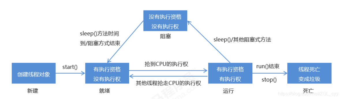 //void start() 导致此线程开始执行; Java虚拟机调用此线程的run方法