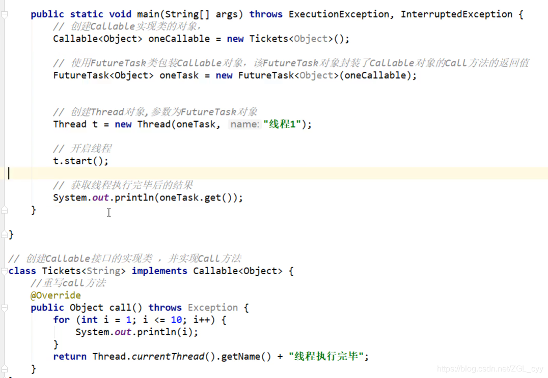 :封装线程执行的代码,直接调用,相当于普通方法的调用