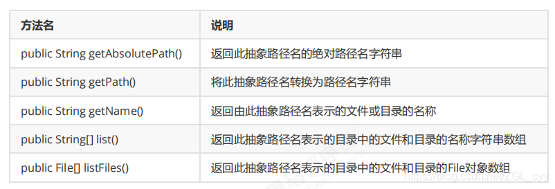 // public File[] listFiles():返回此抽象路径名表示的目录中的文件和目录的File对象