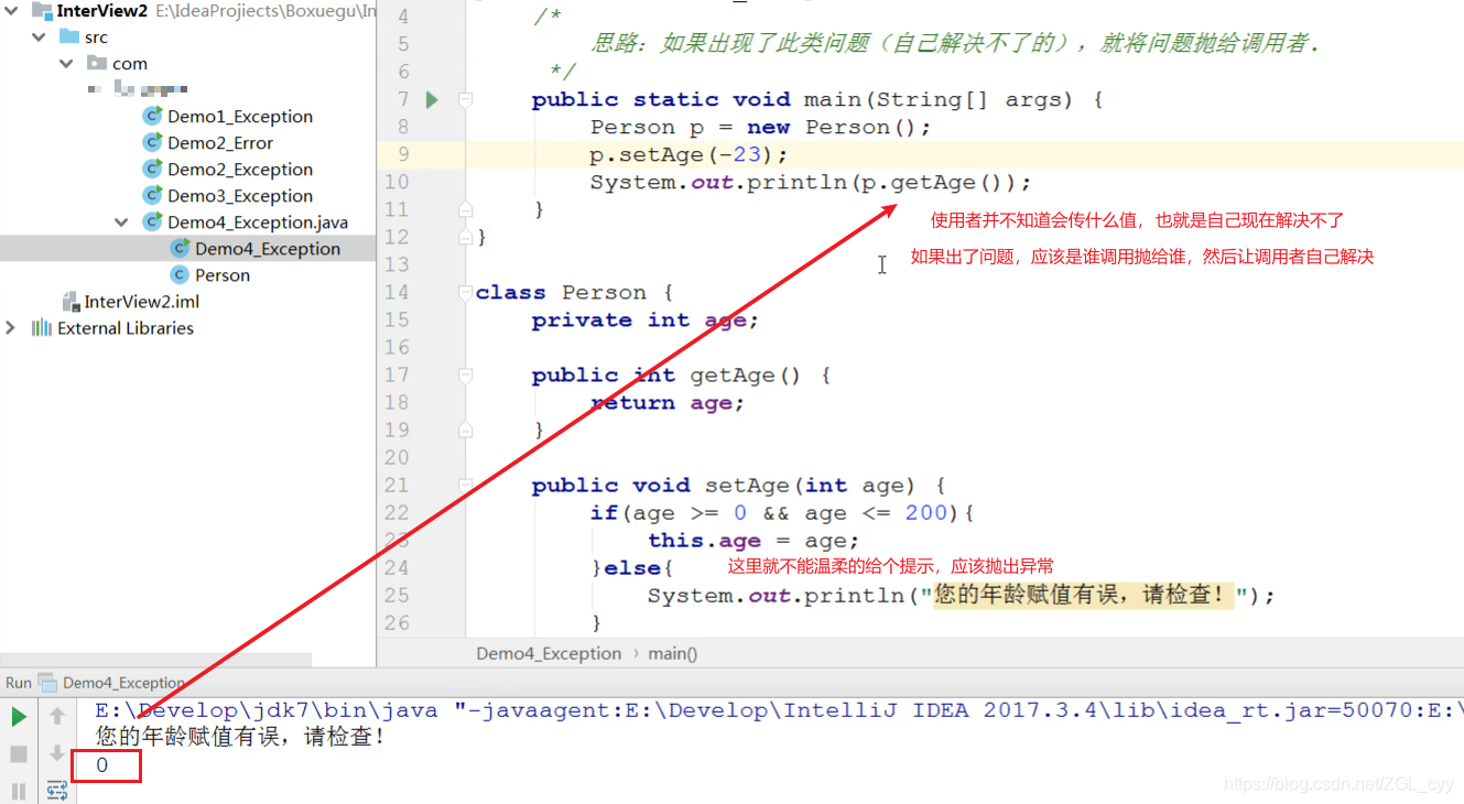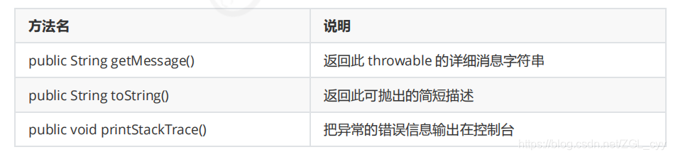 //public String getMessage():返回此 throwable 的详细消息字符串
