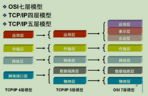 除了标准的 OSI 七层模型以外,常见的网络层次划分还有 TCP/IP 四层协议以及 TCP/IP