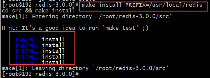 第四步:安装。make install PREFIX=/usr/local/redis