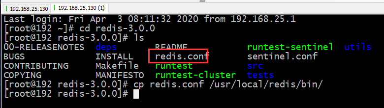 把/root/redis-3.0.0/redis.conf复制到/usr/local/redis/bin目录下