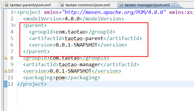 修改taotao-common工程的pom文件,在文件中添加对taotao-parent的继承。