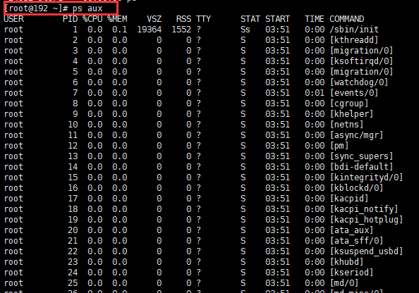 ps aux [| grep keywords]