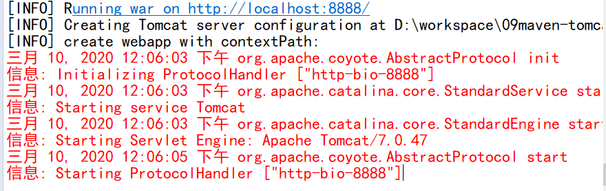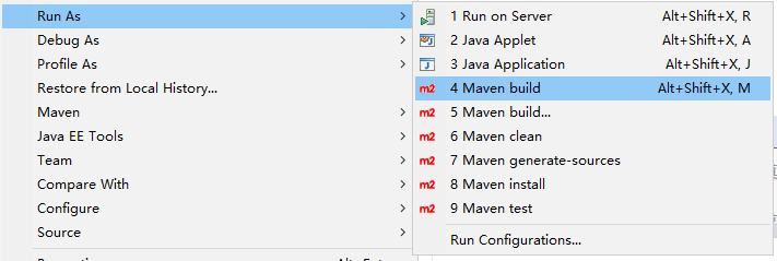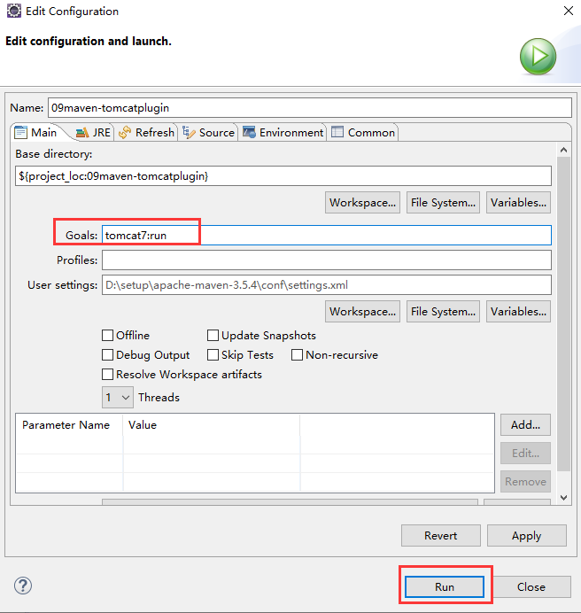 使用Tomcat 插件发布部署并执行 war 工程的时候,使用 maven build 功能实现。应用启动命令为: tomcat7:run。命令中的 tomcat7 是插件命名,由插件提供商决定。run 为插件中的具体功能。具体pom.xml 文件的配置如下: