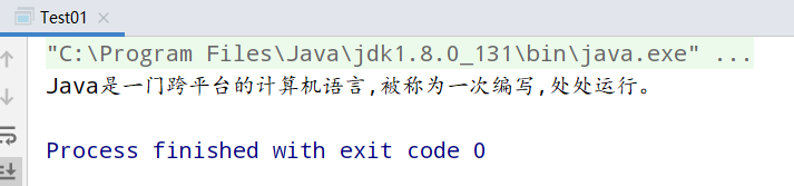 System.out.println("Java是一门跨平台的计算机语言,被称为一次编写,处处运行。");
