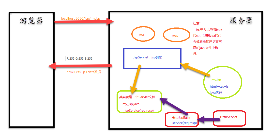 作用:将java代码的运算结果数据或者其他数据响应给浏览器