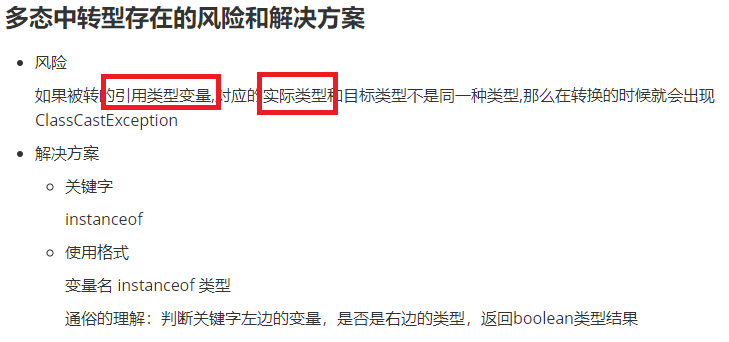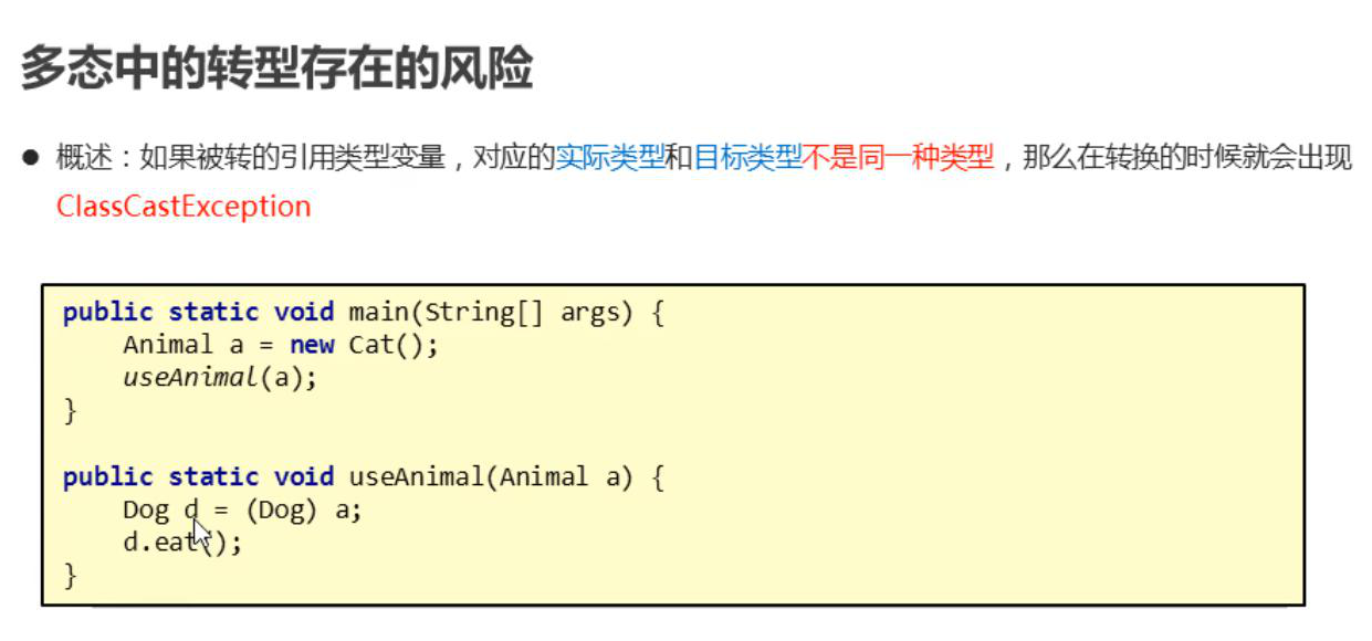 - 格式:子类型 对象名 = (子类型)父类引用;