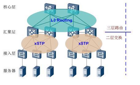传统的二三层网络架构限制了虚拟机的动态迁移范围,只能在一个较小的局部范围内进行迁移。基于VLAN和xSTP技术的传统二层网络,由于这两种技术的制约,可容纳的主机通常不会超过1000台。