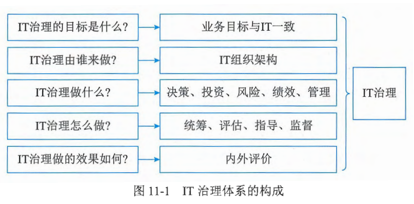 IT治理体系的构成如图11-1所示,具体包括: