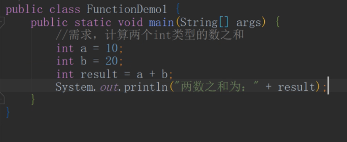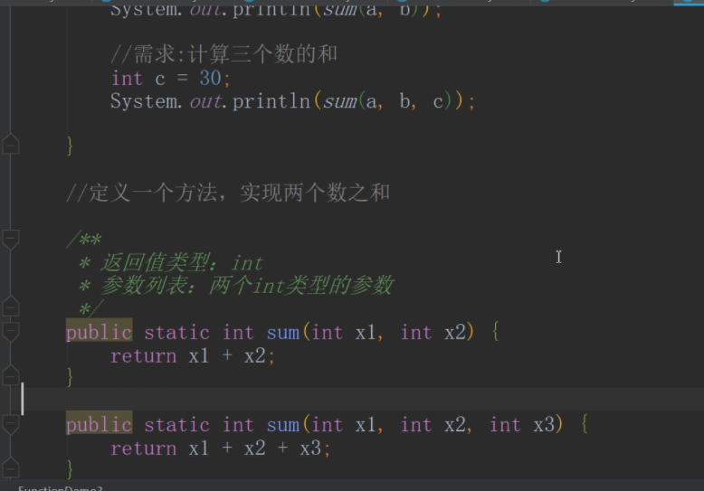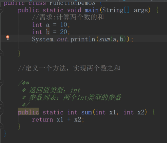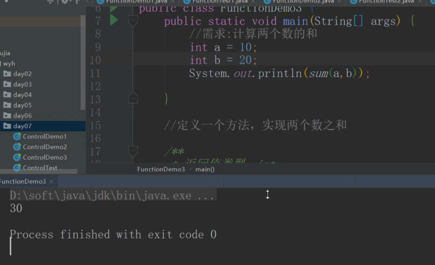 1、定义一个方法,实现两个数之和