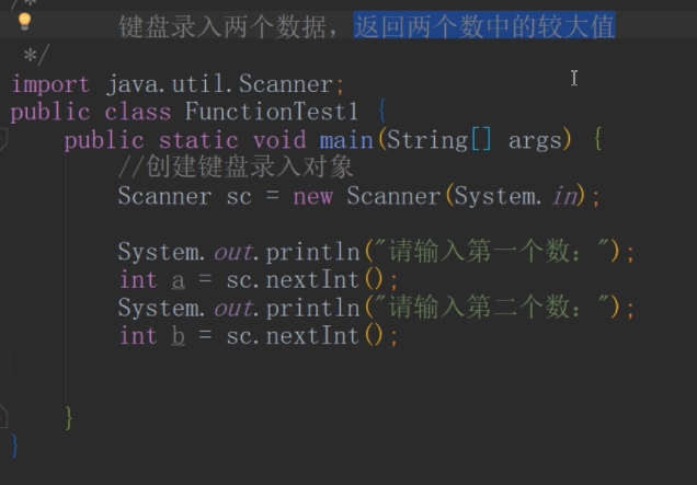 案例1:键盘录入两个数据,返回两个数中的较大值