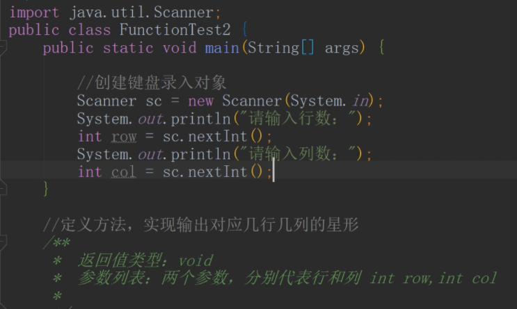 参数列表:两个参数,分别代表行和列 int row,int col