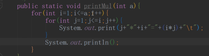 定义一个方法输出对应的乘法表