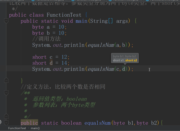 定义方法,比较两个数是否相同