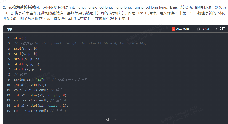 stoi函数:字符串转整形