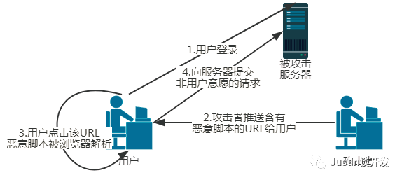 反射型:攻击者诱使用户点击一个嵌入恶意脚本的链接,达到攻击的目的