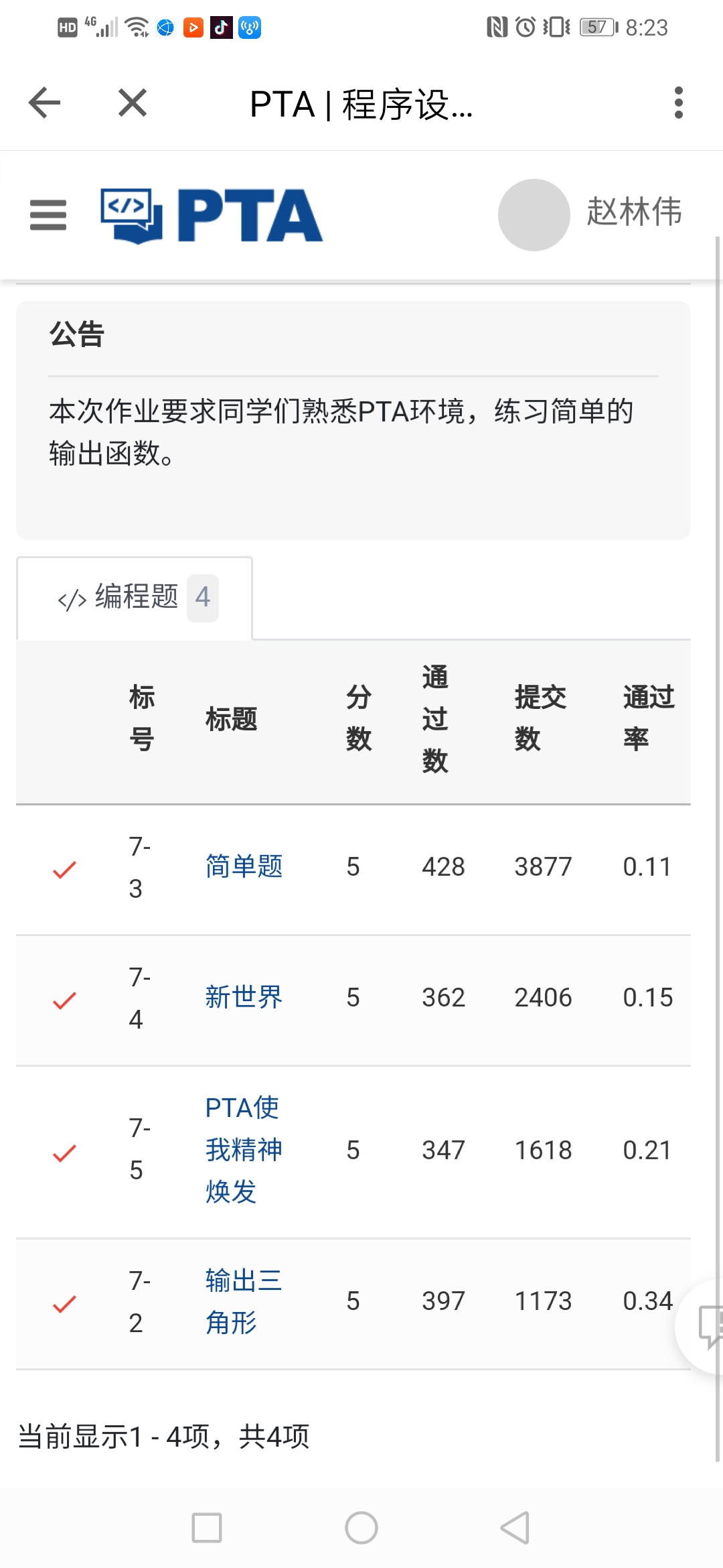 5. 完成PTA第一周编程作业。