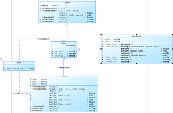 本题的设计思路和题目集4(7-3)的设计思路是一样的,只不过本题的父类Shape类是抽象类,题目集4中的为具体的类。