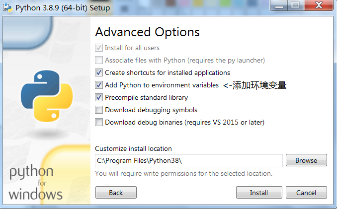 在Python官方网站上安装Python解释器,由于篇幅原因,这里不再过多讲解。安装Python解释器时,我们可以选择安装pip和添加环境变量,便于后续的使用。(见下图)