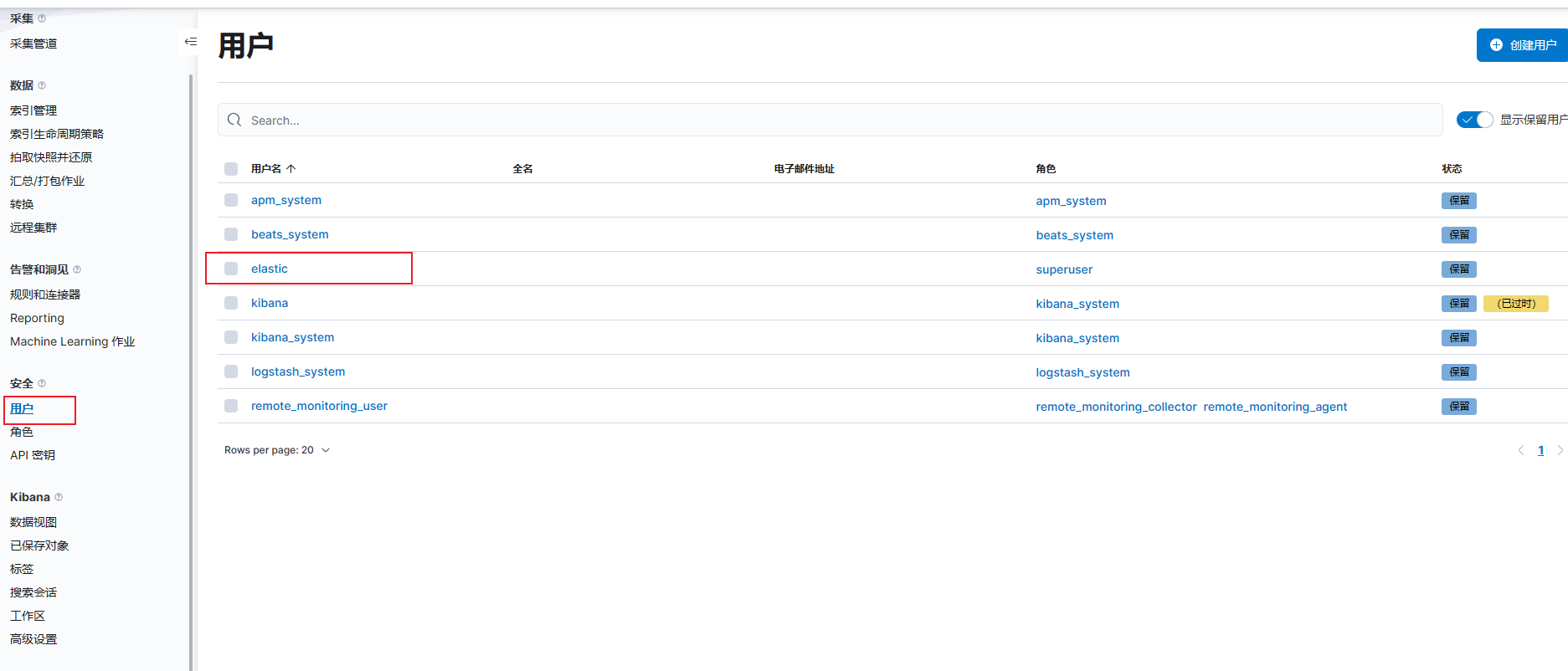 # 输入Elasticsearch的用户名密码,进入系统 elastic:snZ9BREy1v1Bw*W+NTVn