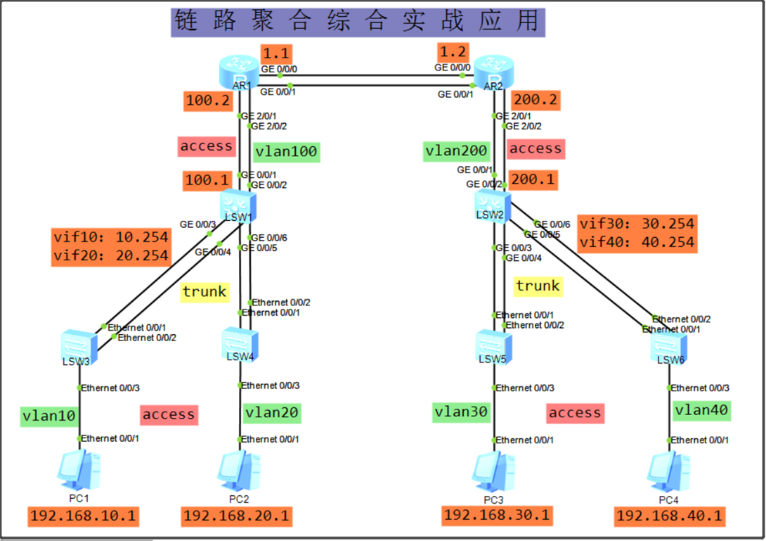[sw1-Eth-Trunk2]port link-type trunk //改接口